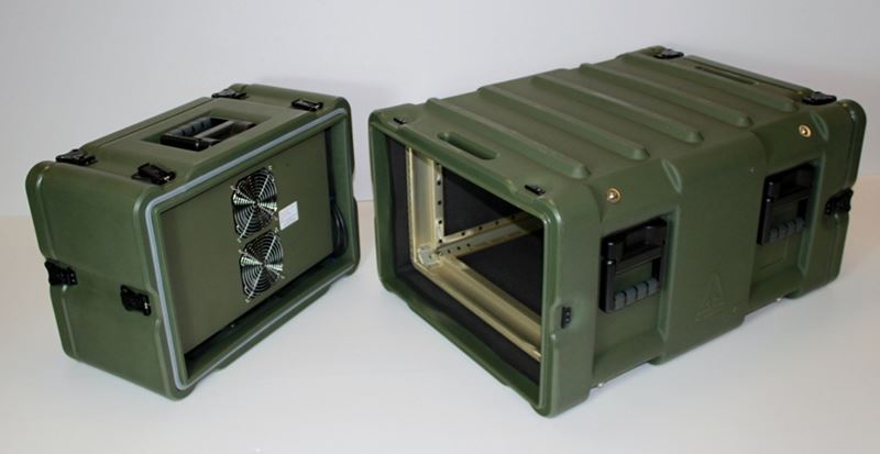 By utilizing our Amazon (rotomolded polyethylene) or ERack® (welded aluminum) transit cases, combined with a reliable, solid state thermoelectric air conditioner, the final equipment configuration is a reliable, robust package that's easy to transport and operate. Both of these rack product lines are ideal for properly packaging communication, encryption, surveillance and many other types of electronic equipment. Including air conditioning (and/or heating) provides the temperature control necessary to protect your sensitive components from damaging heat, as well as dirt, dust, moisture, corrosion, and most importantly - failure in the field.